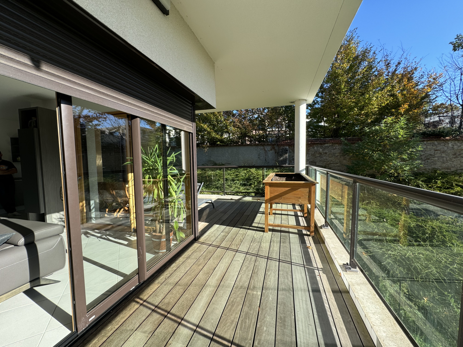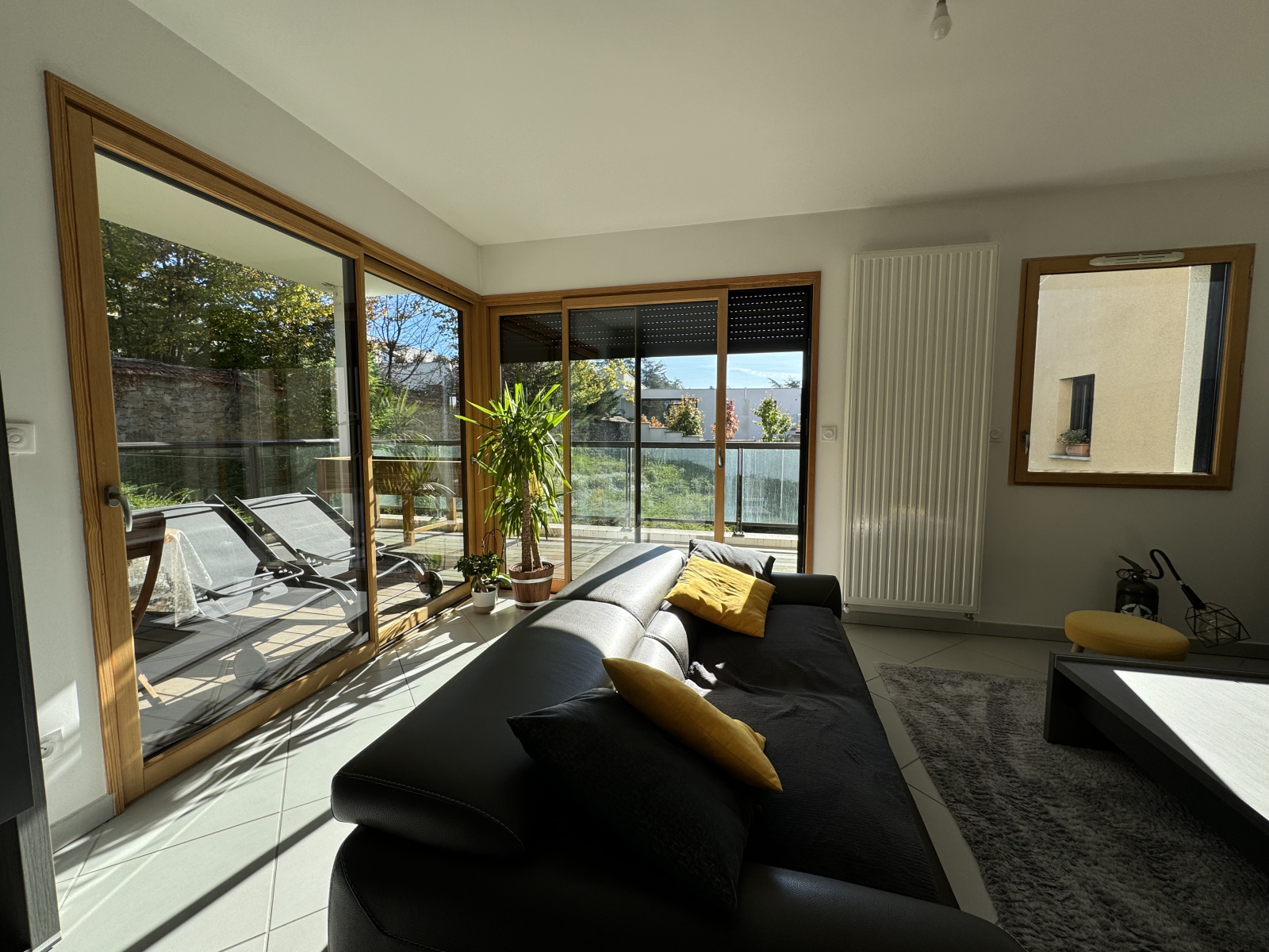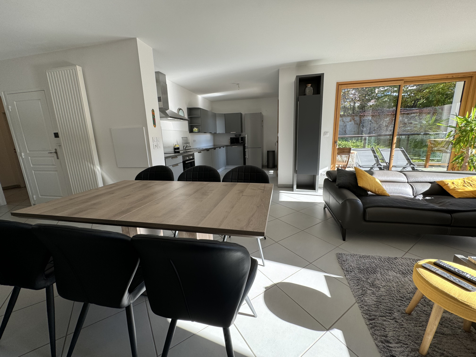 Composé d'un hall d'entrée avec placard dressing, un grand espace séjour de 30 m2 avec salon et salle à manger ouverts sur une terrasse de 20 m2, une cuisine équipée 12 m2 ouverte sur séjour, ces pièces de vie sont très lumineuses grâce aux grandes baies vitrées. L'espace nuit est composé de deux chambres, une chambre de 14 m2 avec placard dressing et une chambre de 10 m2 avec placard également, une belle salle de bain de 5,20 m2 avec baignoire et double vasques, un wc (suspendu) séparé. Un cellier buanderie très pratique (avec arrivées pour lave linge).