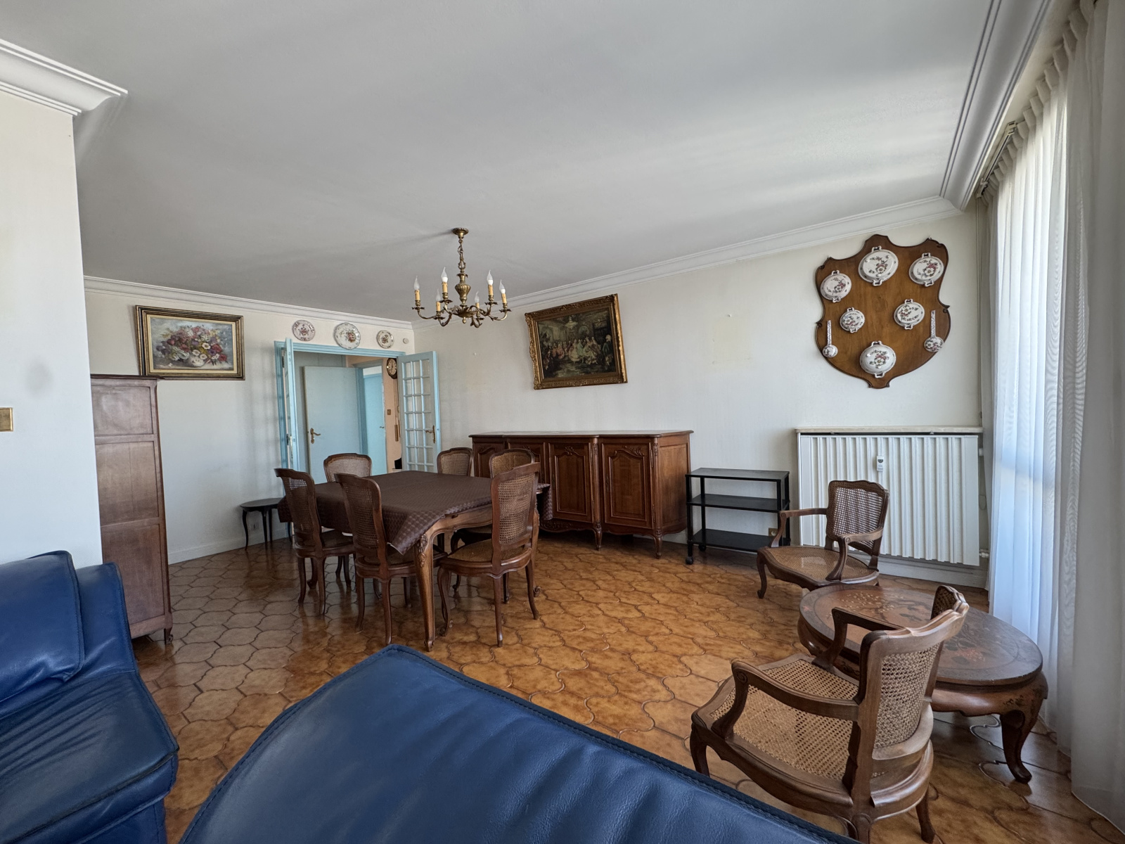 St Etienne rue Gutemberg en vente chez Vos Projets Immo-Helene Besson, bel F4 de 93 m2 avec balcon garage et cave, étage élevé avec ascensuer, sur le palier, aucun escalier, et bien situé à proximité de la place Bellevue avec son marché et ses commerces. Cet appartement vous offre une entrée avec placards, desservant une belle pièce de vie de 32 m2 avec salon et séjour ouverts sur un balcon (4,80 m2) avec vue dégagée et sans vis à vis, à côté du séjour se touve une cuisine équipée (à rafrachir) de 14 m2 ouverte sur le balcon, un dégagement avec dressing dessert l'espace nuit composé de deux chambres, une chambre de 12,80 m2 et une chambre avec placards muraux, une 2eme chambre de 11,50 m2 avec parquets, une salle d'eau de 4,80 m2 avec douche italienne et vasque recmment refaite, un wv séparé. De nombreux rangements. Cet appartement dispose d'une cave et dun garage logeant un véhicule. Lumineux et fonctionnel cet apaprtment est facile et agréable à vivre avec nombreux rangements. Quelques travaux de remise au gout du jour lui donneront une seconde jeunesse. Porte blindée. Double vitrage PVC avec volets électriques. Le plus : un garage dans la copropriété très apprécaible. Chauffage collectif. DPE D. Ce bien proposé à 107 000 € avec garage inclus reste un bel investissement à un coutraisonnable et correct pour la surface (env 1100 €/m2 avec garage). Logement idéal pour un 1er achat. Laissez vous tenter et nenez le visiter !