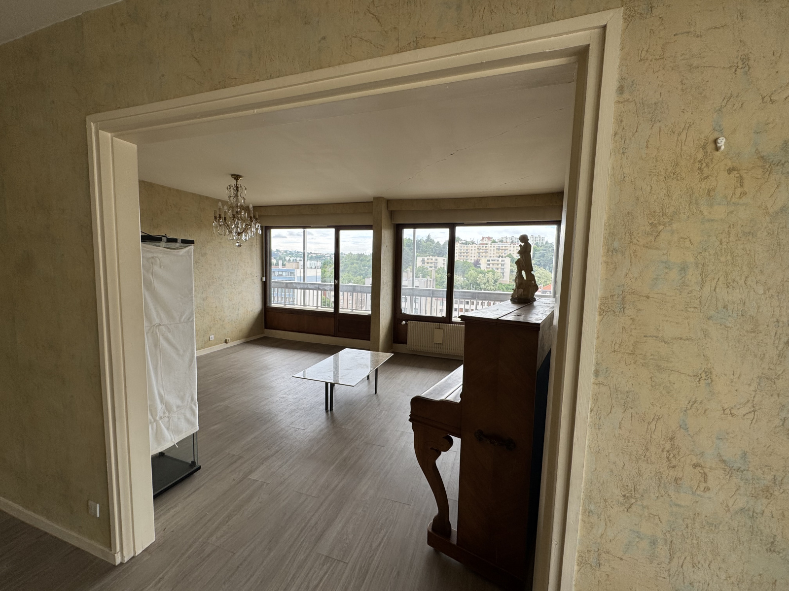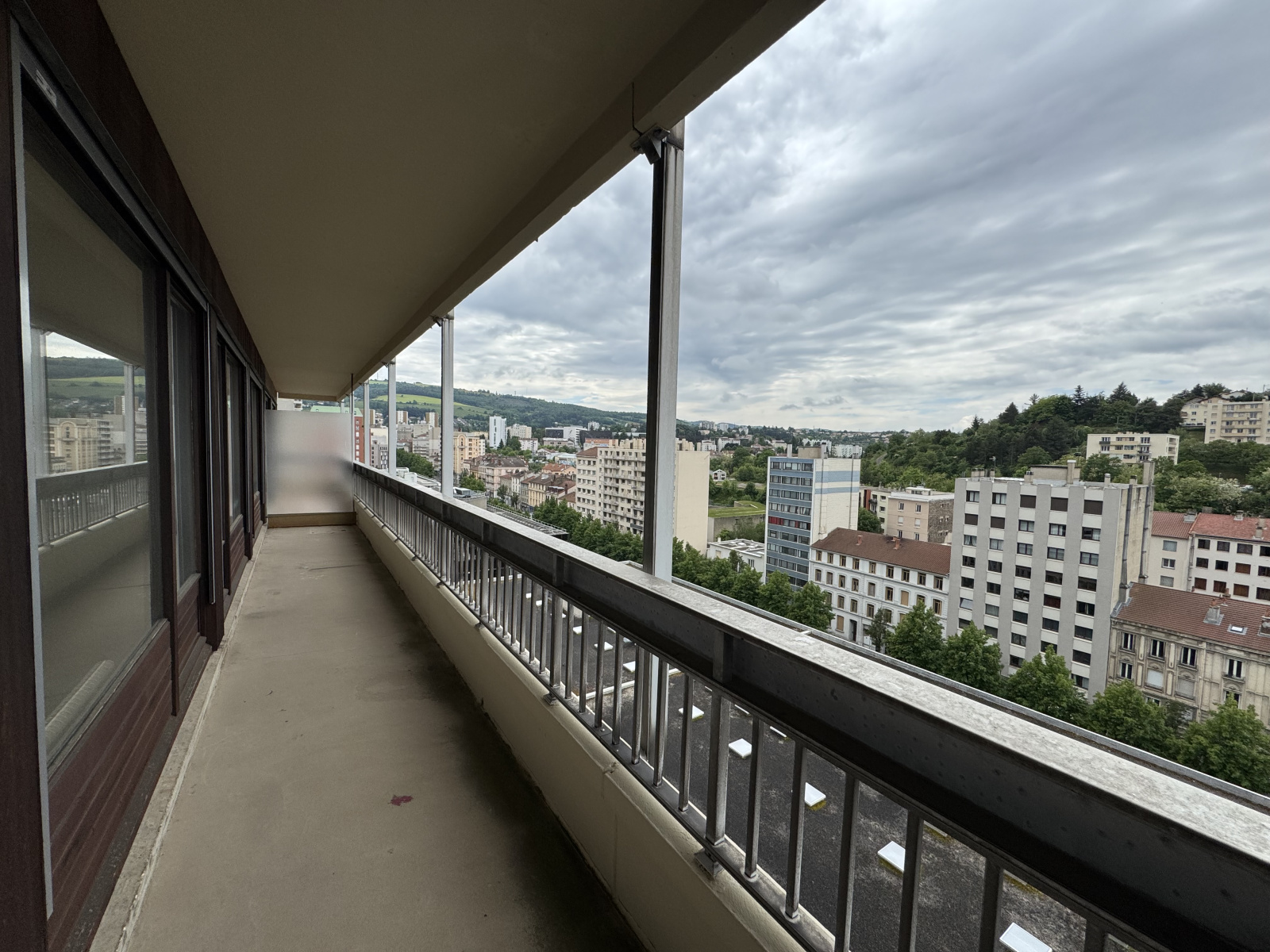 EN EXCLSUIVITÉ CHEZ VOS PROJETS IMMO-HELENE BESSON, A ST ETIENNE CENTRE 2, au 10 eme étage avec ascensur sur le palier, dans la copropriété résidentielle Le Président, F5 de 117,50 m2 carrez. Bien située à proximité des arrets de tram des commerces, non loin de la fac Jean Monnet à deux arrêts de tram, gare de bellevue proche, avec une exposition ouest dans la pièce de vie et les 3 chambres, cet appartement est lumineux et spacieux (une 4eme chambre est possible). L'entrée de 10 m2 avec placard, et porte blindée, dessert une cuisine non équipée de 14 m2 grandes fenêtres exposées nord, une pièce de vie composée d'une partie salle à la manger de 10,50 m2 et d'un salon de 20 m2 ouvert sur un grand balcon de 15 m2 avec une vue très dégagée exposée ouest, un dégagement dessert l'espace nuit composé de 3 chambres de 13 m2 environ chacune, et toutes 3 exposées à l'ouest sur balcon, une salle de bain avec baignoire et lavabo, une salle d'eau avec douche lavabo et wc, un 2eme wc séparé, un dressing de 5 m2, des placards appréciables pour le rangement. Cet apaprtement possede un garage sécurisé avec porte automatisée en sous sol et une cave en sous sol également dans l'immeuble. Double vitrage bois et volets électriques. Chauffage collectif (chaudière gaz neuve qui sera changée en juillet 2025 payée par lespropriétaires actuels ). Classe energie DPE E - GES E Taxe foncière 2190 € - Charges trimestrielles comprenant chauffage + eau et charges generales de coproriété 300 € (incluant fond Alur de 50€/ trimestre).