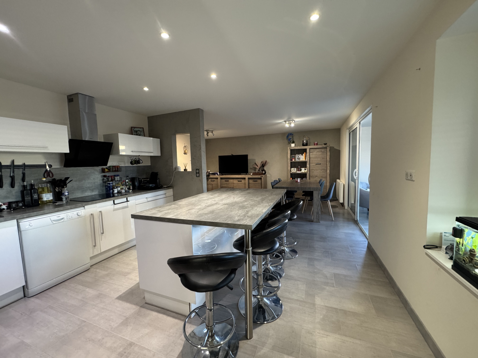 Surface habitable de 74 m2 composée d'une entrée, une pièce de vie de 40 m2 avec cuisine équipée ouverte, très agréable et ouverte sur une véranda de 15 m2 pour un esapce plus confortable encore, une chambre de 10,40 m2 avec placards dressing, une salle d'eau de 4,20 m2 avec douche et vasque, (emplacement lave linge) un wc séparé. Un garage de 12,40 m2 avec son ouverture automatisée, avec accès direct avec l'habitation.