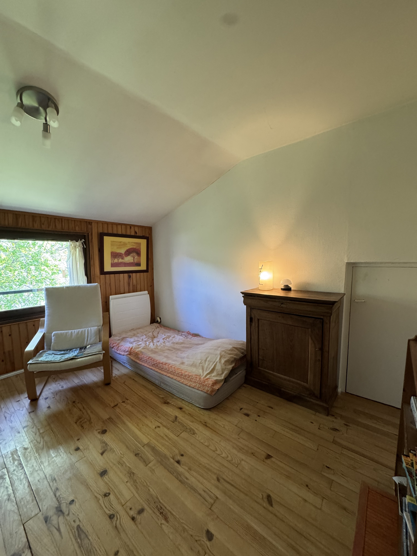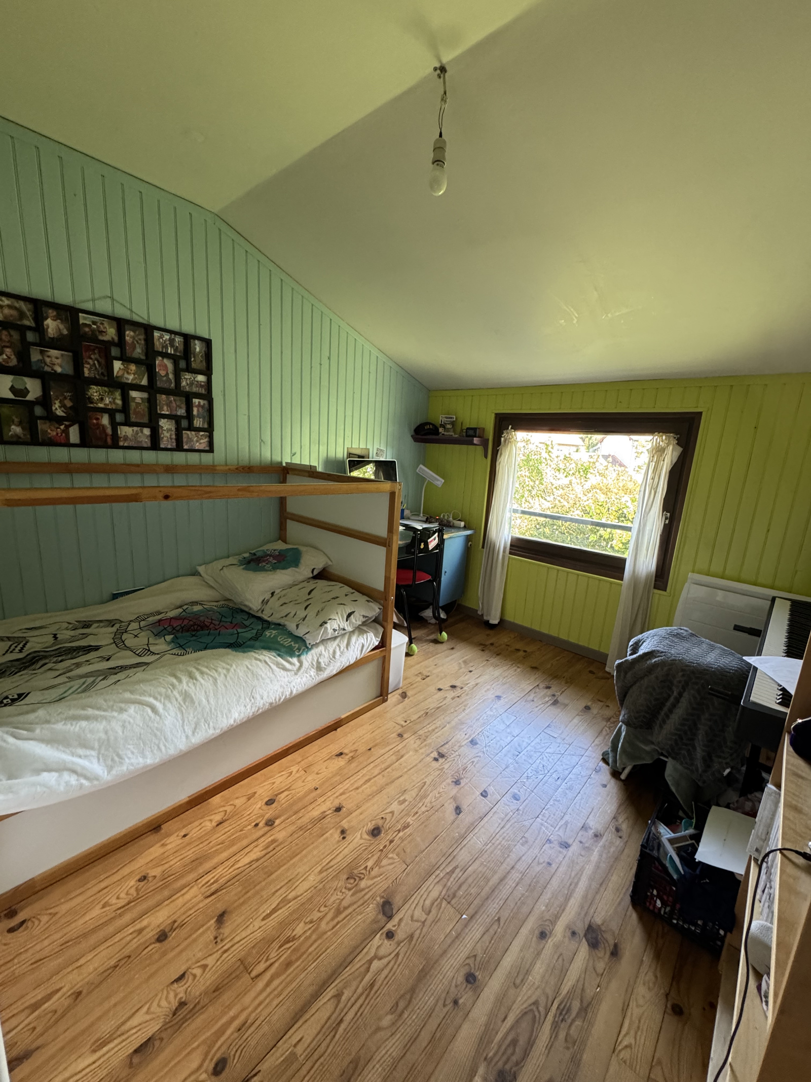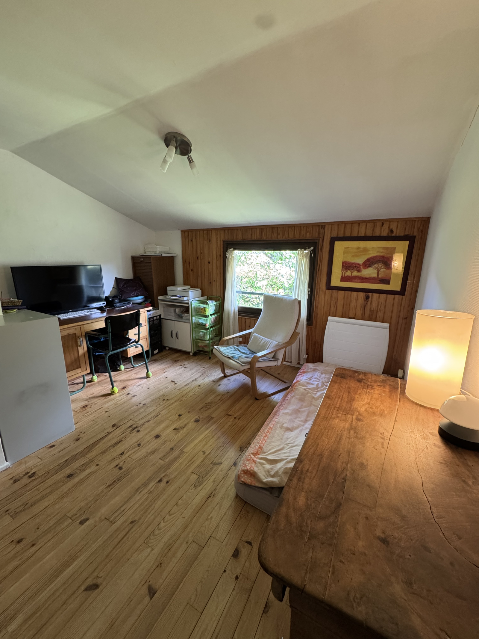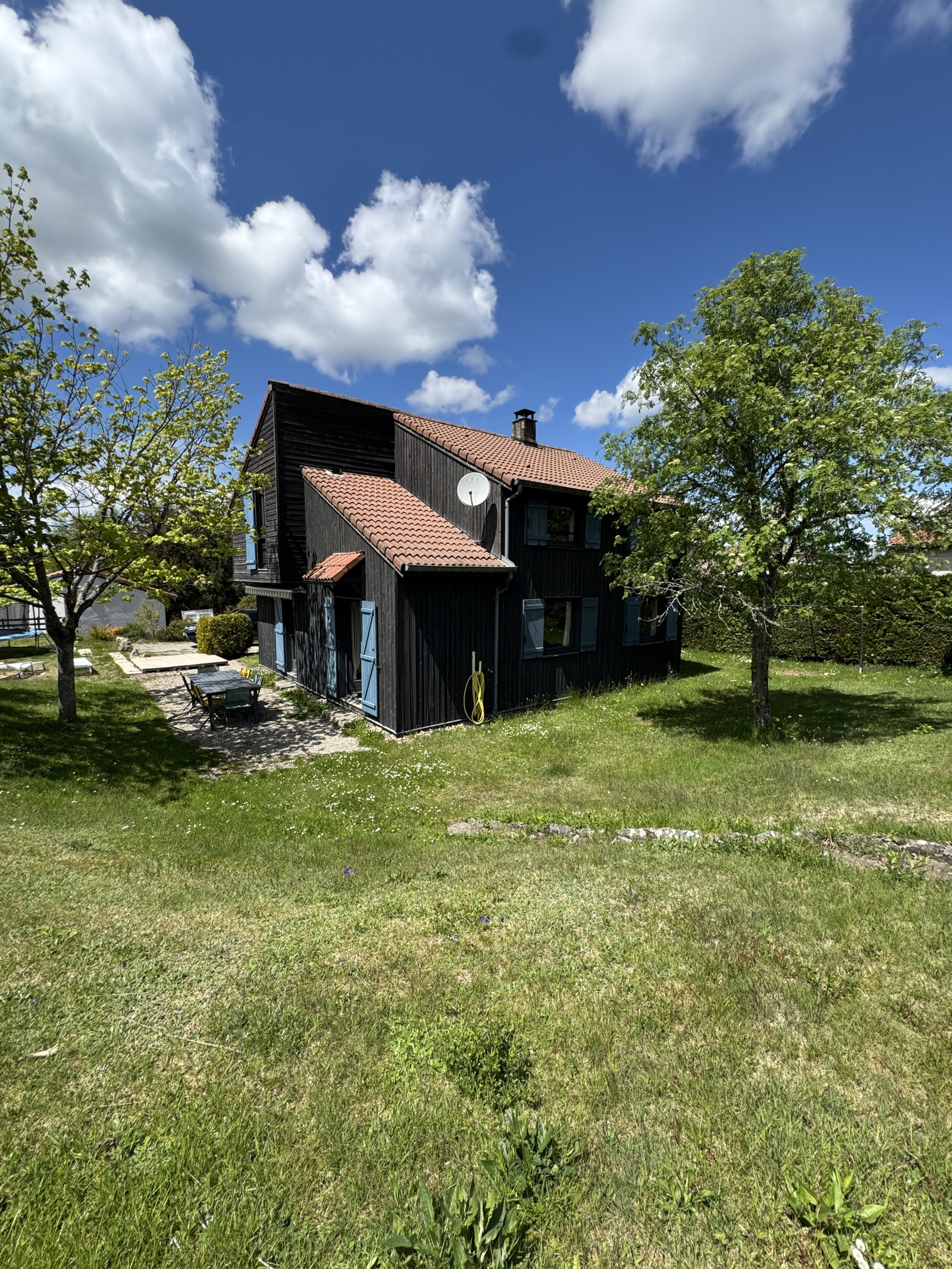 Le 1er étage avec un dégagement de 5-6 m2 dessert 4 chambres (11,70 m2- 9,95 m2 - 11,80 m2 - 11,50 m2), une salle de bain de 4,80 m2 avec baignoire, double vasques et fenêtre, un deuxieme wc séparé de 1,75 m2 avec lave-mains et fenêtre (neuve), des petits greniers en sous pentes. Un garage double de 35-40 m2, les places sont côte à côte avec chacune son portail non autoamtisé. Terrain arboré de 1 133 m2 orienté sud est et ouest. + 2 places de parking supplémentaires en extérieur. Un abri bois pour les réserves de l'hiver.
