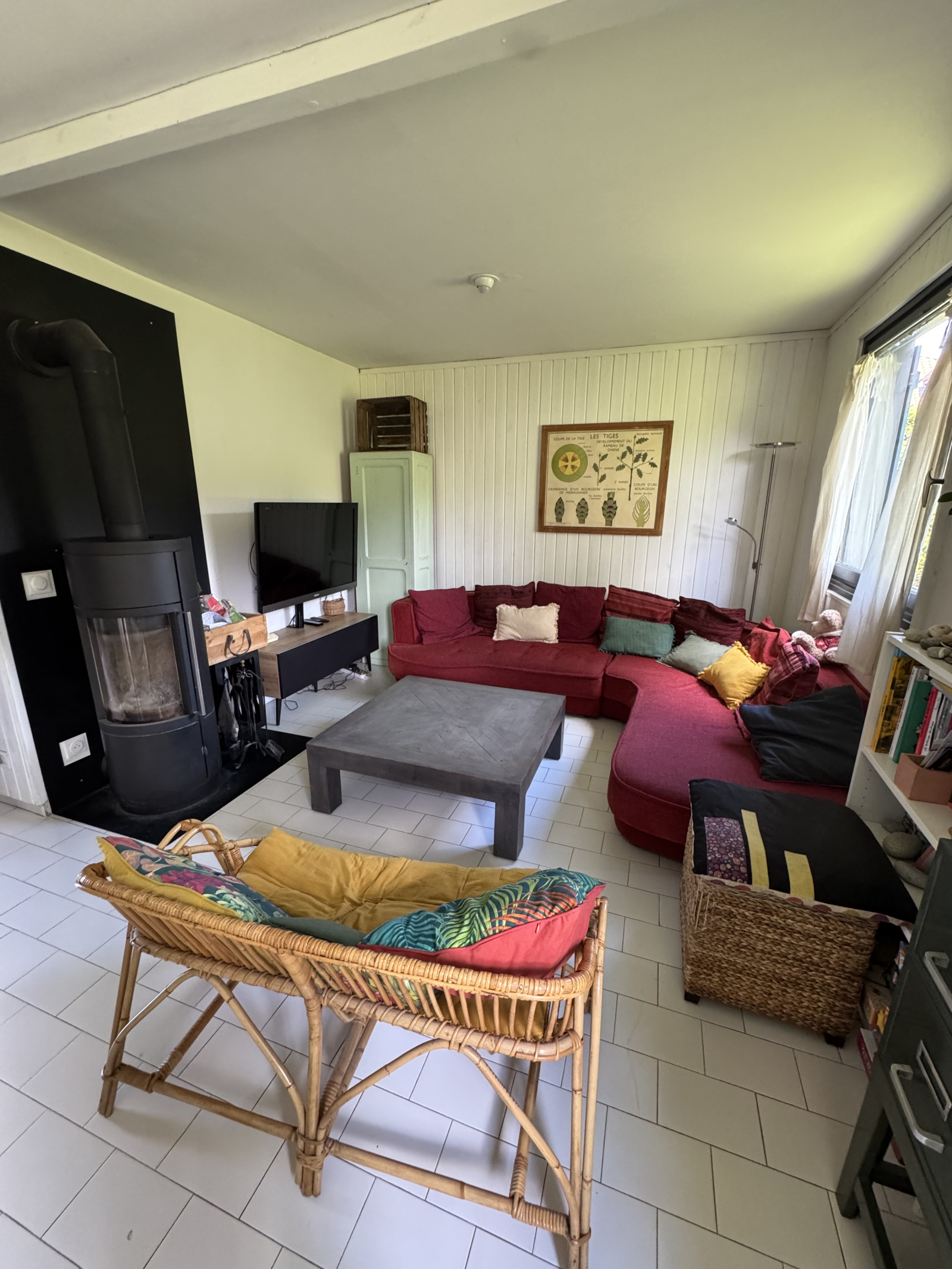 Cette maison offre une surface habitable de 111 m2 comprenant en rdc une entrée de 7,50 m2 desservant une pièce de vie de 32 m2 agréable et lumineuse, ouverte directement sur le jardin et la terrasse au sud, avec un poêle à bois pour la douceur des chaleureuses soirées d'hiver, une cuisine semi-équipée de 11 m2 ouverte sur la partie salle à manger, et ouverte également sur la terrasse pour les repas au soleil au printemps et en été, une pièce de 12 m2 est affectée à la buanderie/cellier et une seconde pièce de 12 m2 est à usage de stockage (et pourrait être aménagée par exemple en chambre au rdc), un wc avec lave-mains et fenêtre, un escalier en bois depuis le hall d'entrée dessert l'étage supérieur où se trouve l'espace nuit.