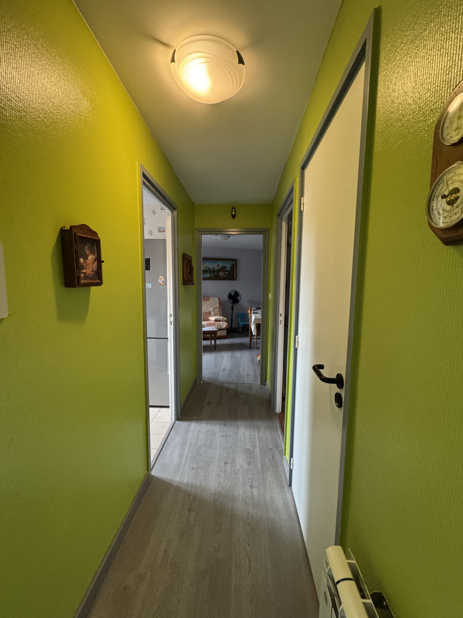 Surface habitable de 51,88 m2 comprenant une entrée de 4,66 m2, lino sur plancher, une cuisine aménagée de 6,05 m2, une salle à manger de 19,15 m2, parquet flottant au sol, une chambre de 13,56 m2, rangement de 2,89 m2 , une salle de bain de 4,35 m2 avec baignoire et vasque (lino au sol), arrivée lave-linge, un wc séparé de 1,22 m2, un grenier. Une cave en sous sol. Pas de stationnement. Chauffage individuel électrique et cumulus électrique. Double vitrage PVC. Volets manuels. DPE de ce lot : D(225) GES B (7) diagnostic du 15/9/2020