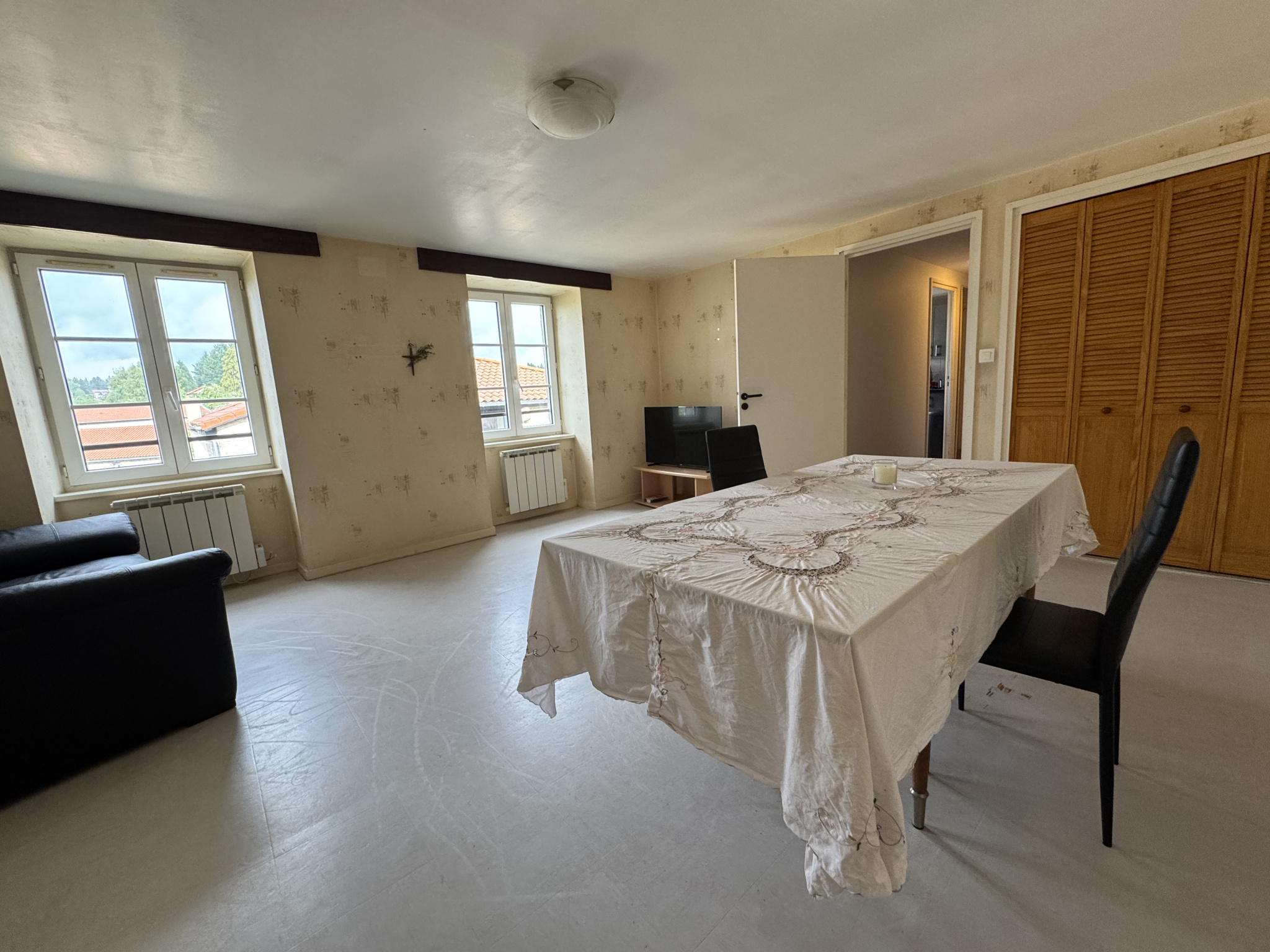 Au 2eme étage et 3eme étage en duplex de 86,47 m2, loyer 470€/mois hors charge. Charges mensuelles 40€.
